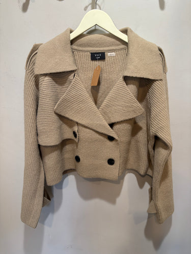 Tan Knit Cropped Trench Jacket