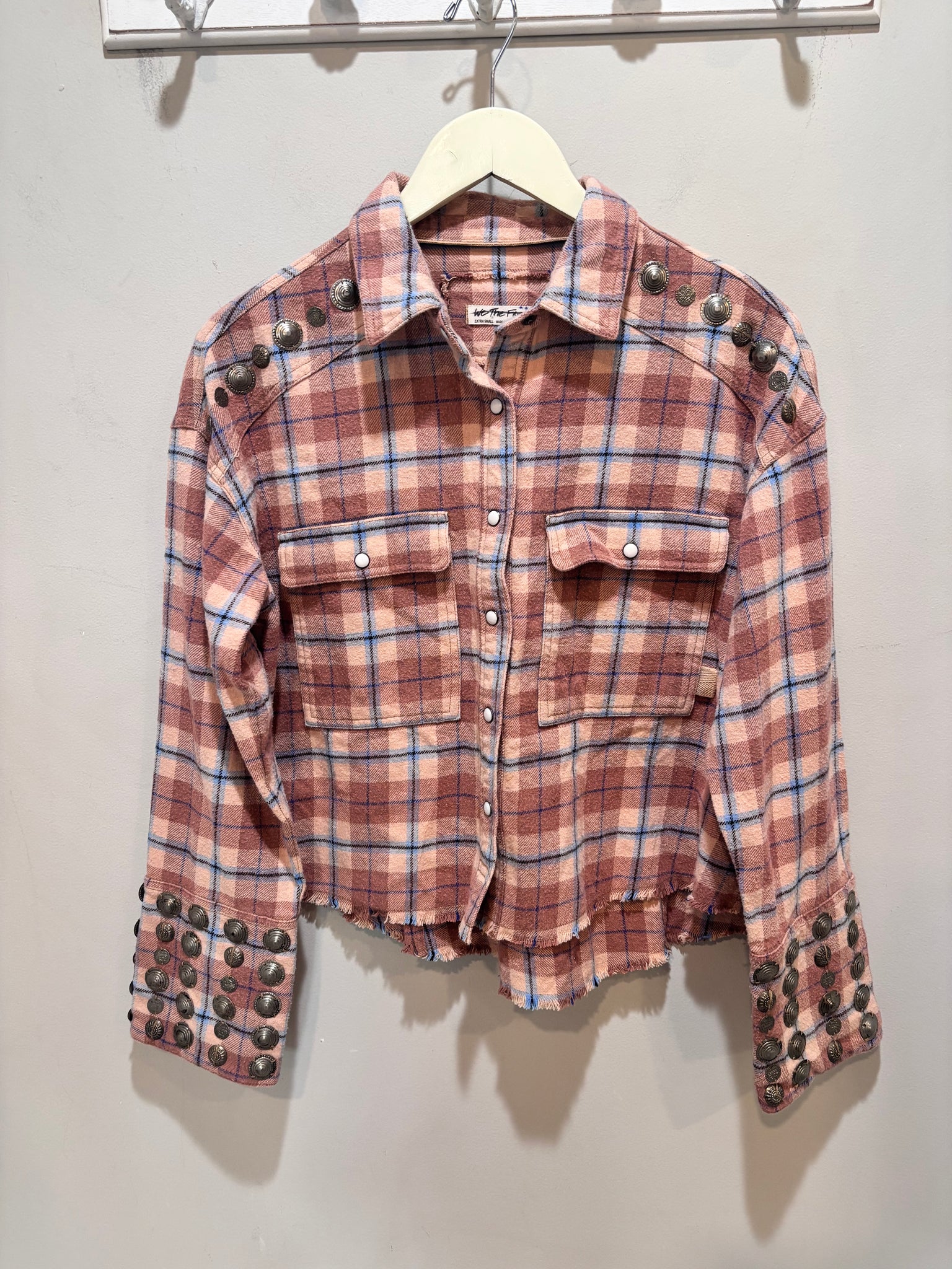 We The Free Mauve Plaid Embellished Top
