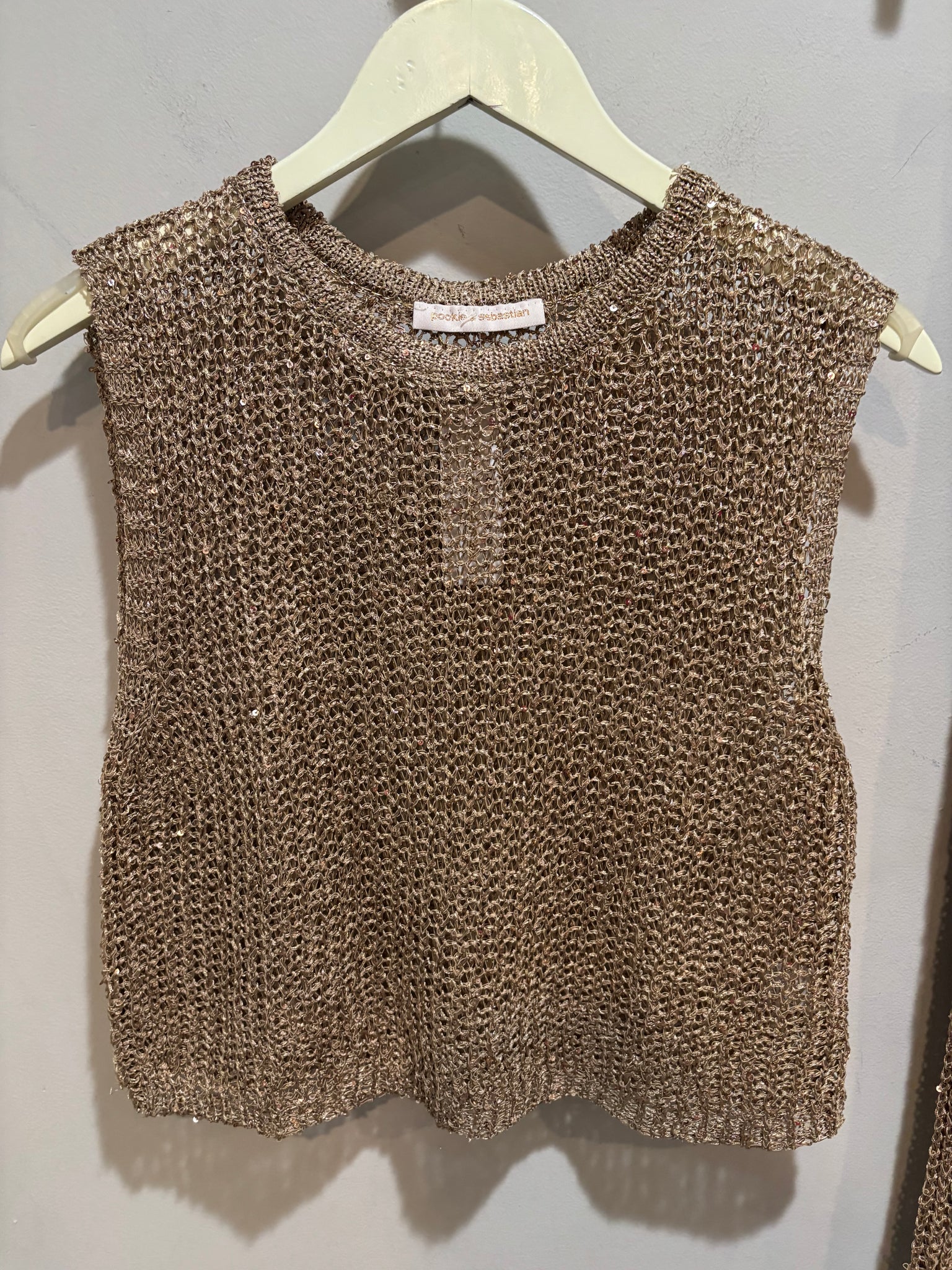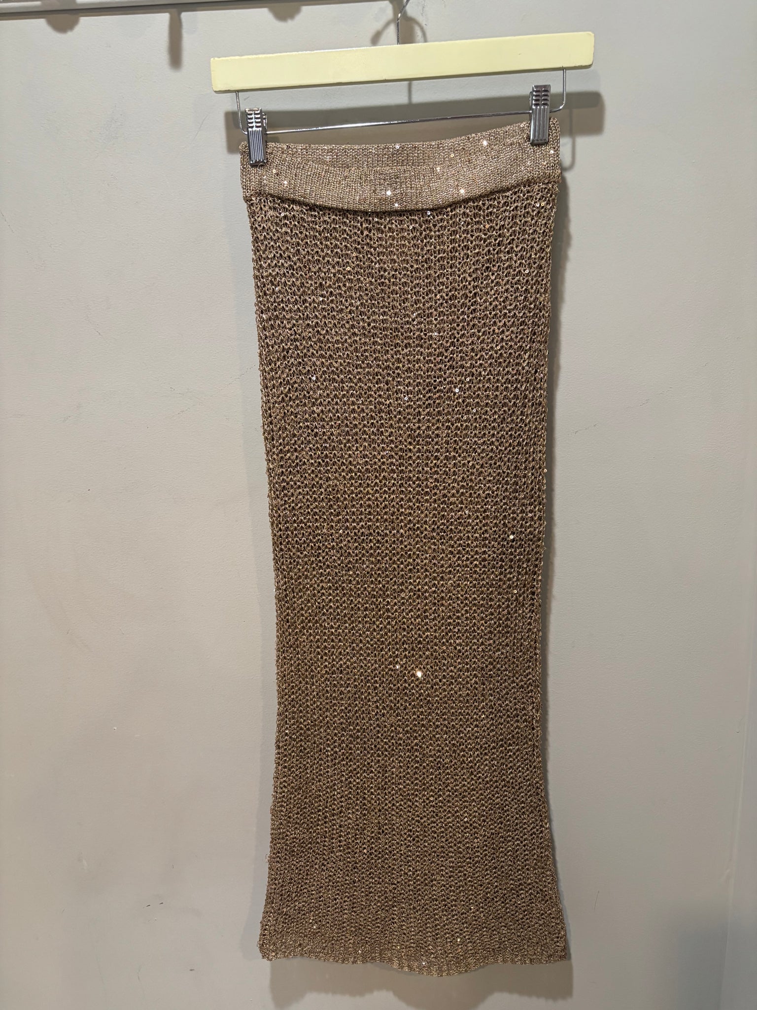 Pookie & Sebastian Gold Crochet 2 Piece Skirt Set