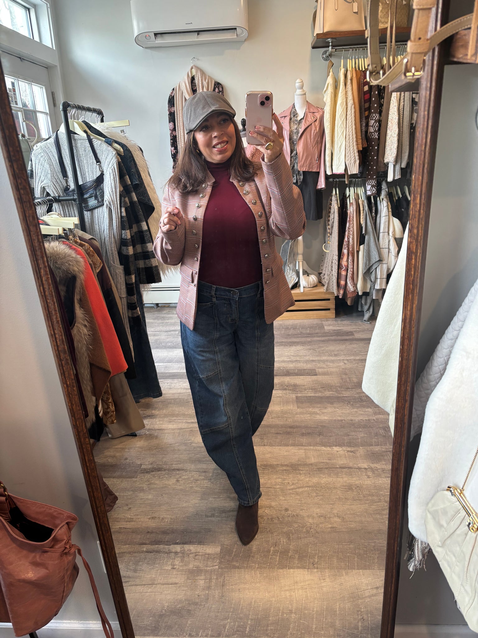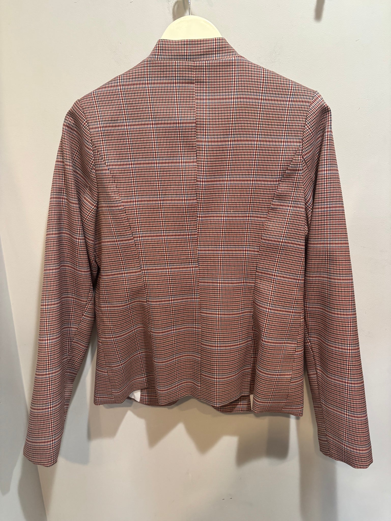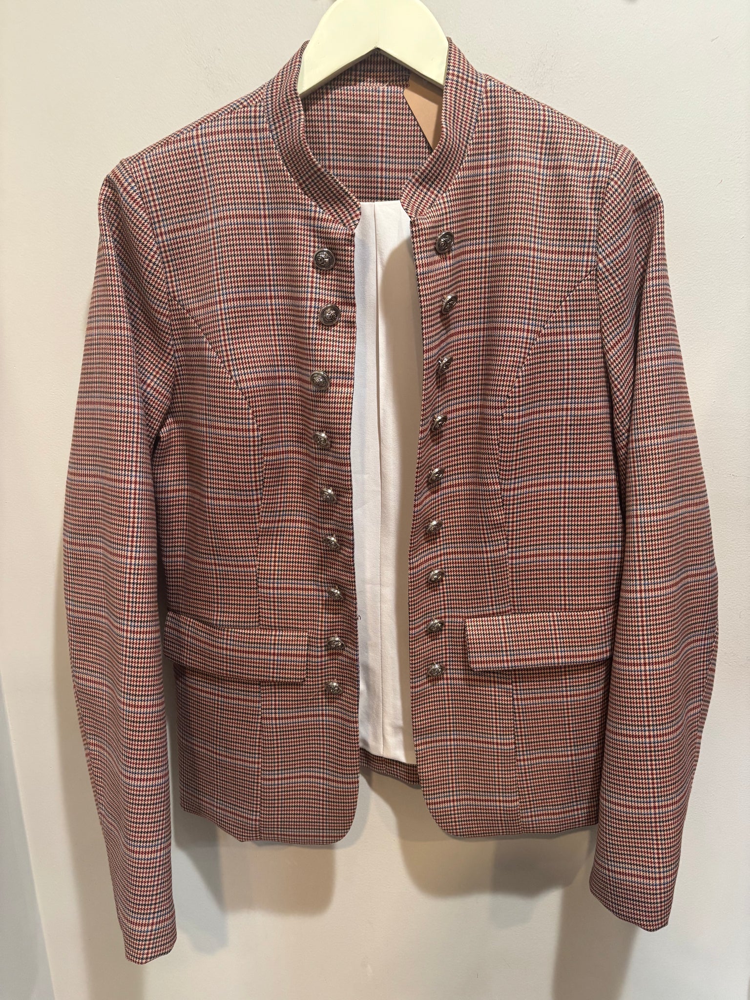 Burgundy Houndstooth Multicolor Military Jacket