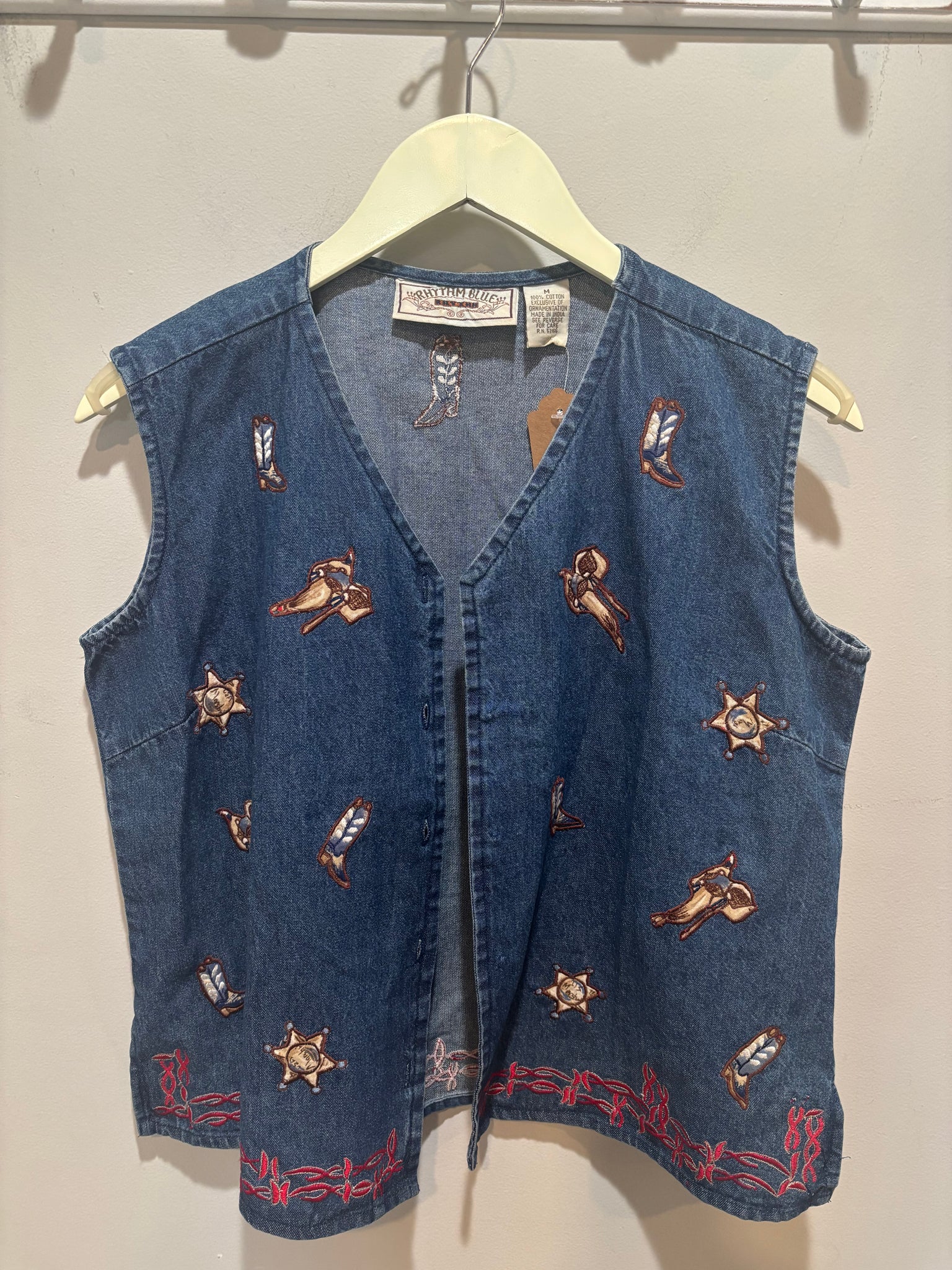 Vintage Rhythm Blue Denim Embroidered Vest