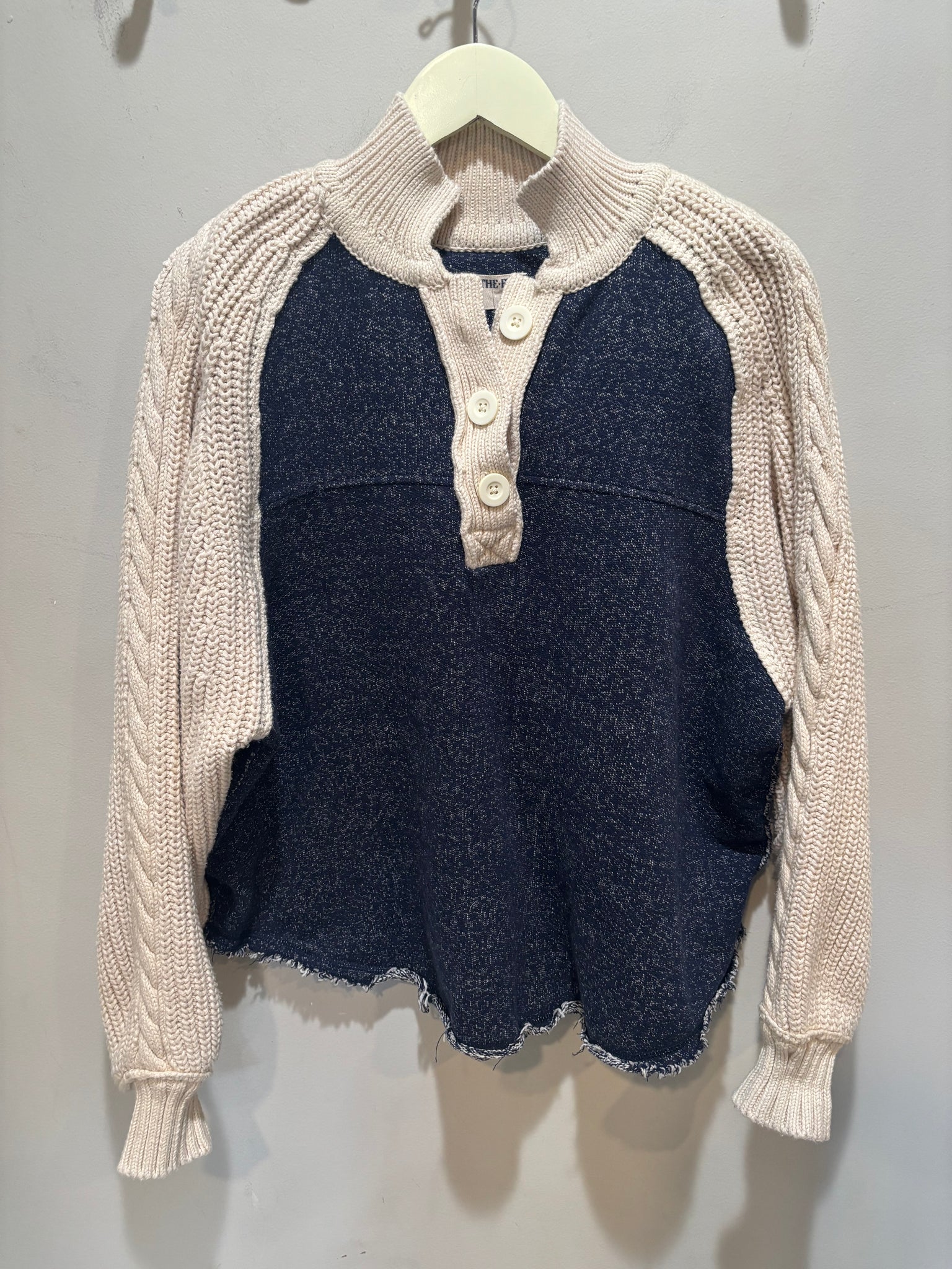 • Load image into Gallery viewer, We The Free Blue CableKnit Top